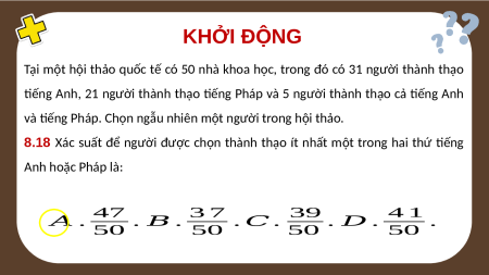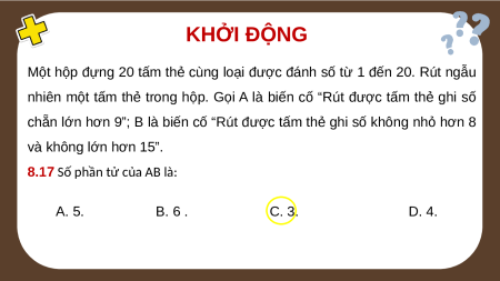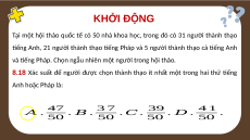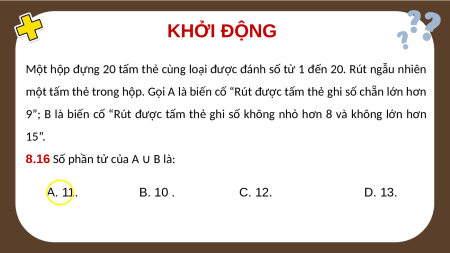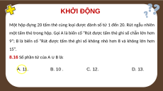 8.16 Số phần tử của A ∪ B là: A. 11. B. 10 . C. 12. D. 13. KHỞI ĐỘNG