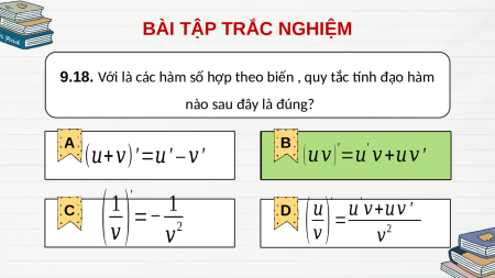 9.18. Với là các hàm số hợp theo biến , quy tắc tính đạo hàm nào sau đây là đúng?