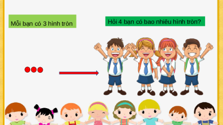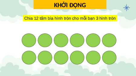 Chia 12 tấm bìa hình tròn cho mỗi bạn 3 hình tròn Mỗi bạn có 3 hình tròn