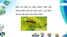 rồi tìm kết quả của phép nhân. Mỗi con kiến có 6 chân 6 7 = ? 6 + 6 + 6 + 6 + 6 + 6 +6 = 42 6 7 = 42