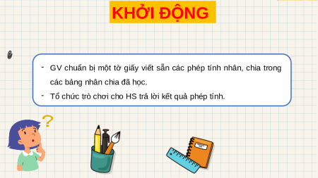 - GV chuẩn bị một tờ giấy viết sẵn các phép tính nhân, chia trong