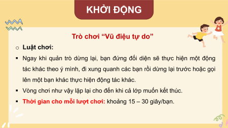 nhảy múa,... khi quản trò thực hiện hoạt động nào thì cả lớp làm theo.