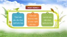 Đánh giá sự phù hợp của bản thân với nghề định lựa chọn HOẠT ĐỘNG 1 1 2 3 Thảo luận Thảo luận Lợi ích của đưa ra ý kiến yêu cầu chọn việc chọn về chọn nghề nghề phù hợp nghề phù hợp phù hợp.