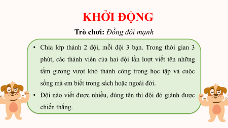• Chia lớp thành 2 đội, mỗi đội 3 bạn. Trong thời gian 3