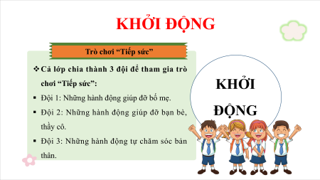 § Đội 2: Những hành động giúp đỡ bạn bè, ĐỘNG thầy cô.