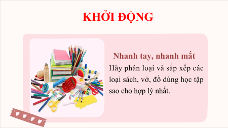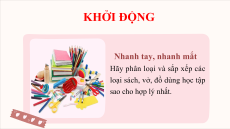 • Nhiệm vụ: sắp xếp phải xếp chúng theo các nhóm: sách giáo khoa, vở
