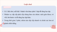 • Có 2 đội chơi, mỗi đội 3 thành viên được phát 1 hộp đồ dùng học tập.