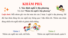 Luật chơi: Mỗi nhóm ghi vào thẻ màu tên của 2 hoặc 3 nghề ở địa phương. Đố