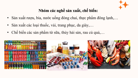 • Sản xuất rượu, bia, nước uống đóng chai, thực phẩm đông lạnh,…