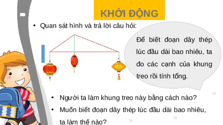 • Quan sát hình và trả lời câu hỏi: N Đ gười ể bi ết ta làm đoạn d kh ây ung thép l tr ú eo c đầ b u ằng dài cách bao nhi uốn êu, ta một đoạ đo các n dây thép cạnh của . khung treo rồi tính tổng.