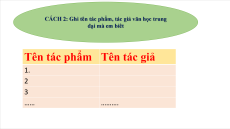 Tên tác phẩm Tên tác giả 1. 2 3 …… ……….