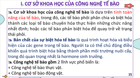 I. CƠ SỞ KHOA HỌC CỦA CÔNG NGHỆ TẾ BÀO