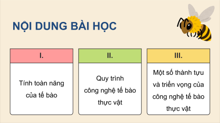 THỰC VẬT VÀ MỘT SỐ THÀNH TỰU NỘI DUNG BÀI HỌC I. I . I I. Một số thành tựu Quy trình Tính toàn năng và triển vọng của công nghệ tế bào của tế bào công nghệ tế bào thực vật thực vật