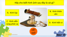 Hãy cho biết hình ảnh sau đây là cái gì? B. Kính thiên A. Kính lúp văn C. Kính viễn D. Kính hiển vi vọng phản xạ HẾT GIỜ
