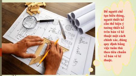 BÀI 1. TIÊU CHUẨN TRÌNH BÀY BẢN VẼ KỸ THUẬT Để người chế tạo hiểu đúng, người thiết kế cần thể hiện ý tưởng thiết kế trên bản vẽ kĩ thuật như thế nào? Để người chế tạo hiểu đúng, người thiết kế cần thể hiện ý tưởng thiết kế trên bản vẽ kĩ thuật một cách chính xác, đúng quy định bằng việc tuân thủ theo tiêu chuẩn về bản vẽ kĩ thuật.