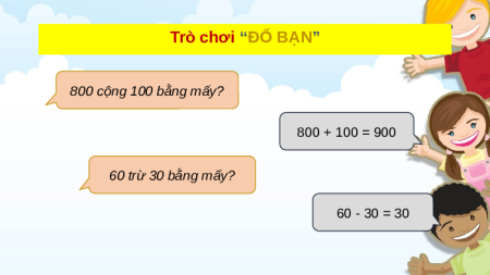 800 cộng 100 bằng mấy? 800 + 100 = 900