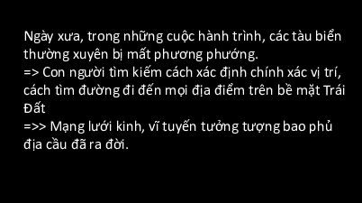 =>> Mạng lưới kinh, vĩ tuyến tưởng tượng bao phủ địa cầu đã ra đời.