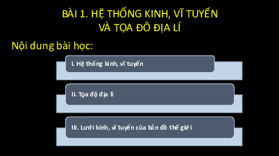 BÀI 1. HỆ THỐNG KINH, VĨ TUYẾN VÀ TỌA ĐÔ ĐỊA LÍ Nội dung bài học: