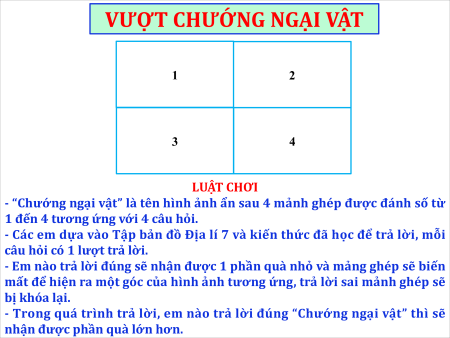 - Trong quá trình trả lời, em nào trả lời đúng “Chướng ngại vật” thì sẽ