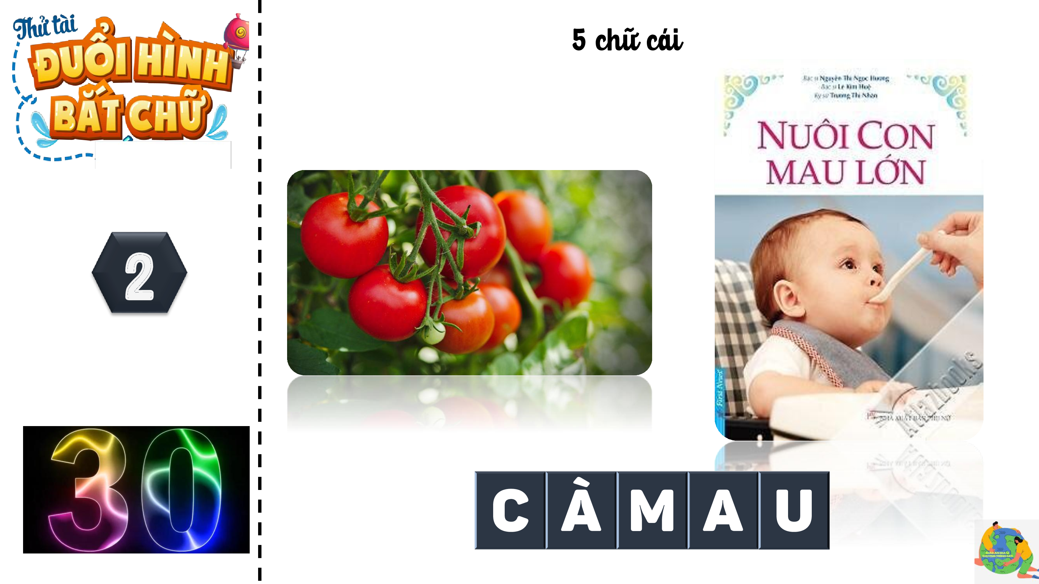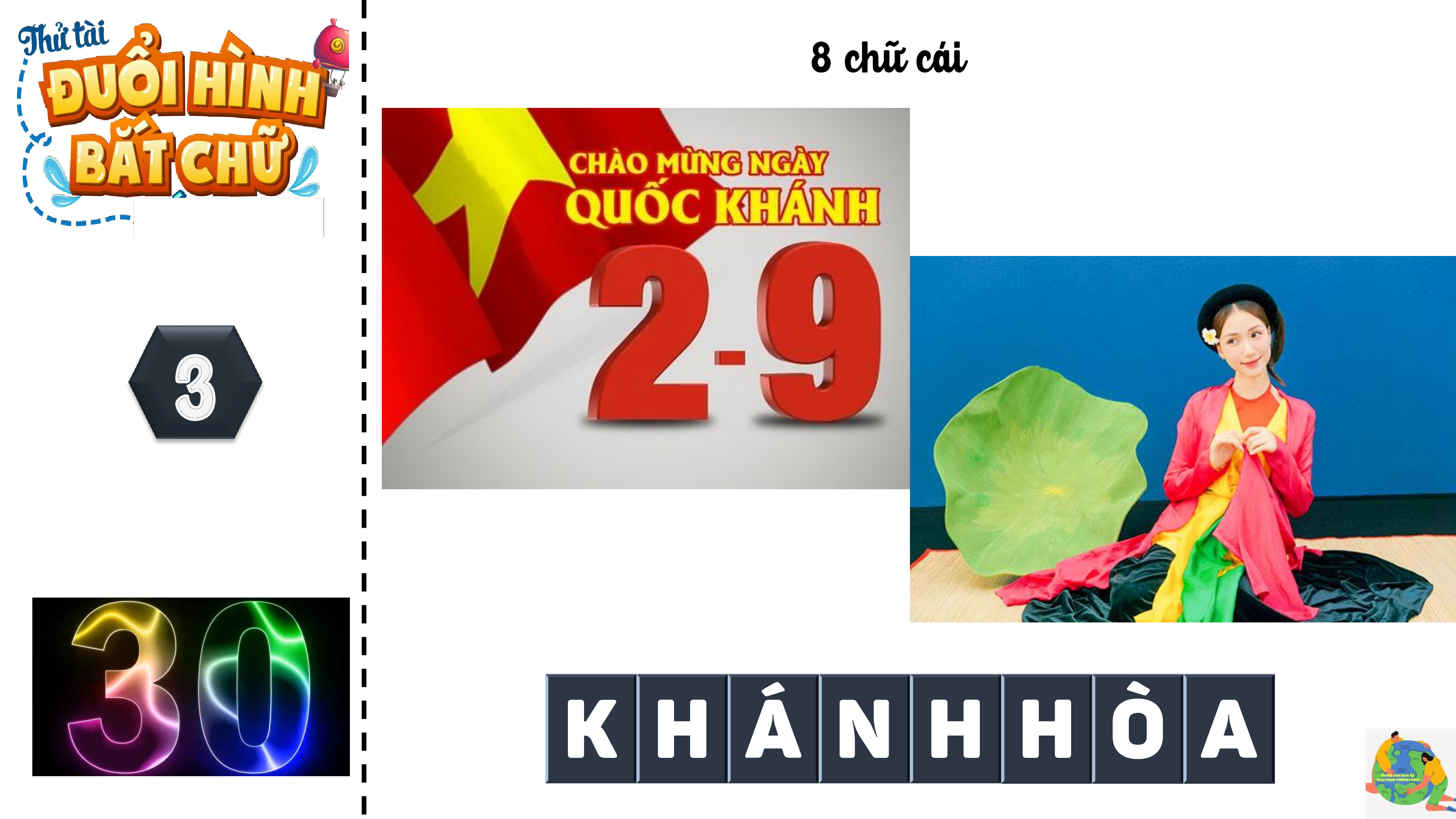 - Giơ tay giành quyền trả lời => Đúng => thưởng CHƠI - 10 giây/câu 7 chữ cái 1 H À G I A N G 5 chữ cái 2 C À M A U 8 chữ cái 3 K H Á N H H Ò A