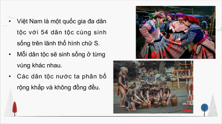 • Mỗi dân tộc sẽ sinh sống ở từng vùng khác nhau.