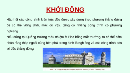 nhận rằng tháp ngoài cùng bên phải trong hình là nghiêng và các công trình còn lại đều thẳng đứng.