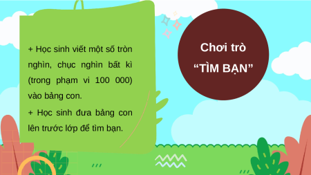 nghìn, chục nghìn bất kì “TÌM BẠN” (trong phạm vi 100 000) vào bảng con. + Học sinh đưa bảng con