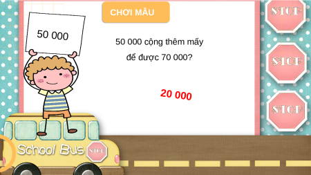 lên trước lớp để tìm bạn. CHƠI MẪU 50 000 50 000 cộng thêm mấy để được 70 000? 20 000 EM LÀM ĐƯỢC NHỮNG GÌ?