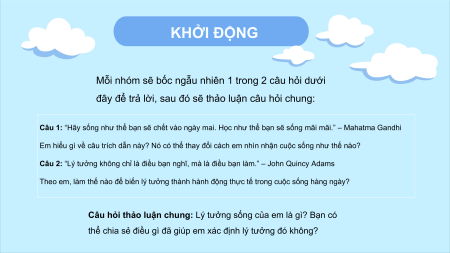 Câu hỏi thảo luận chung: Lý tưởng sống của em là gì? Bạn có