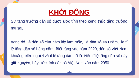 lệ tăng dân số hằng năm. Biết rằng vào năm 2020, dân số Việt Nam