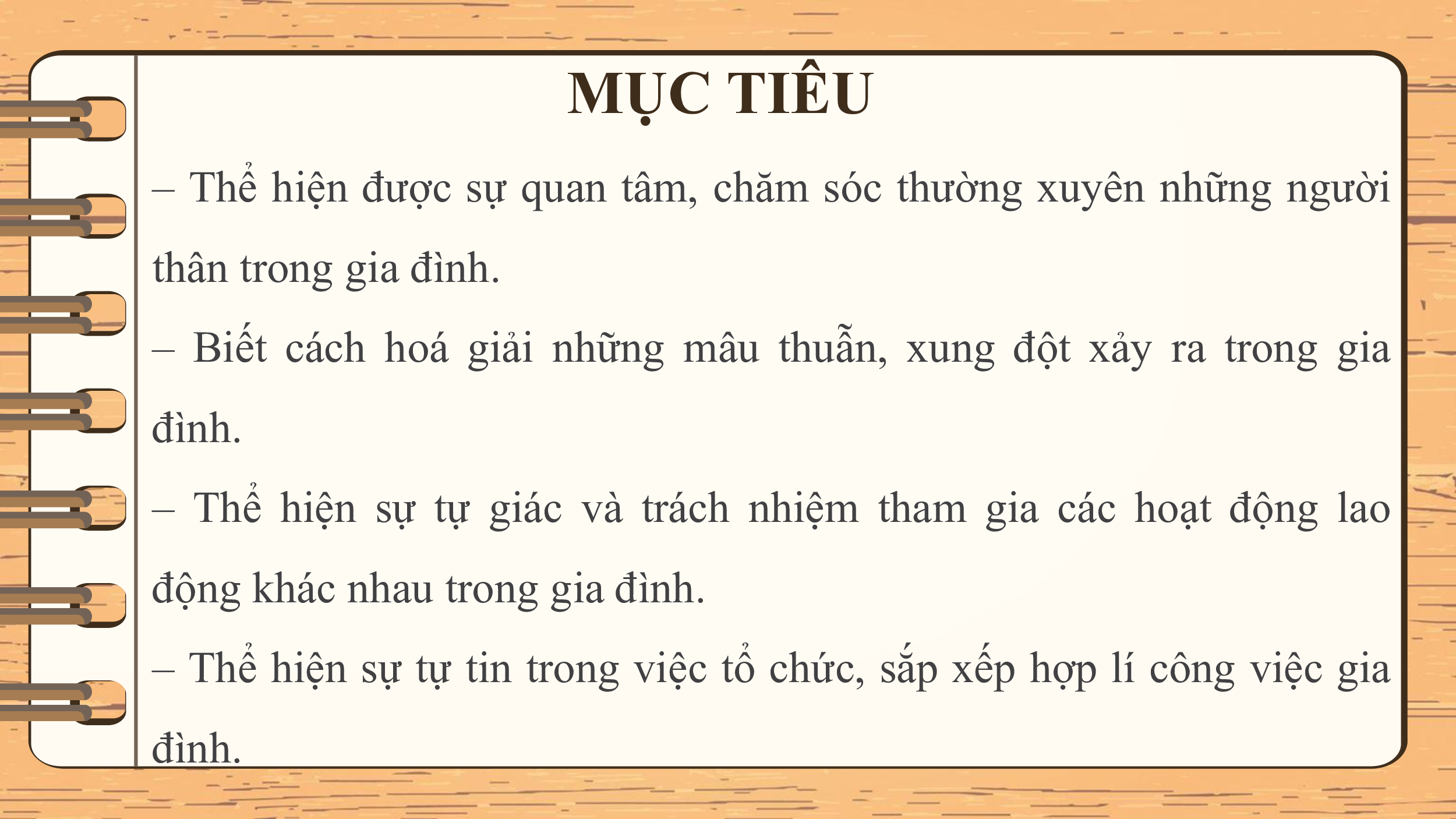 – Biết cách hoá giải những mâu thuẫn, xung đột xảy ra trong gia đình.