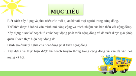 - Đánh giá được ý nghĩa của hoạt động phát triển cộng đồng.