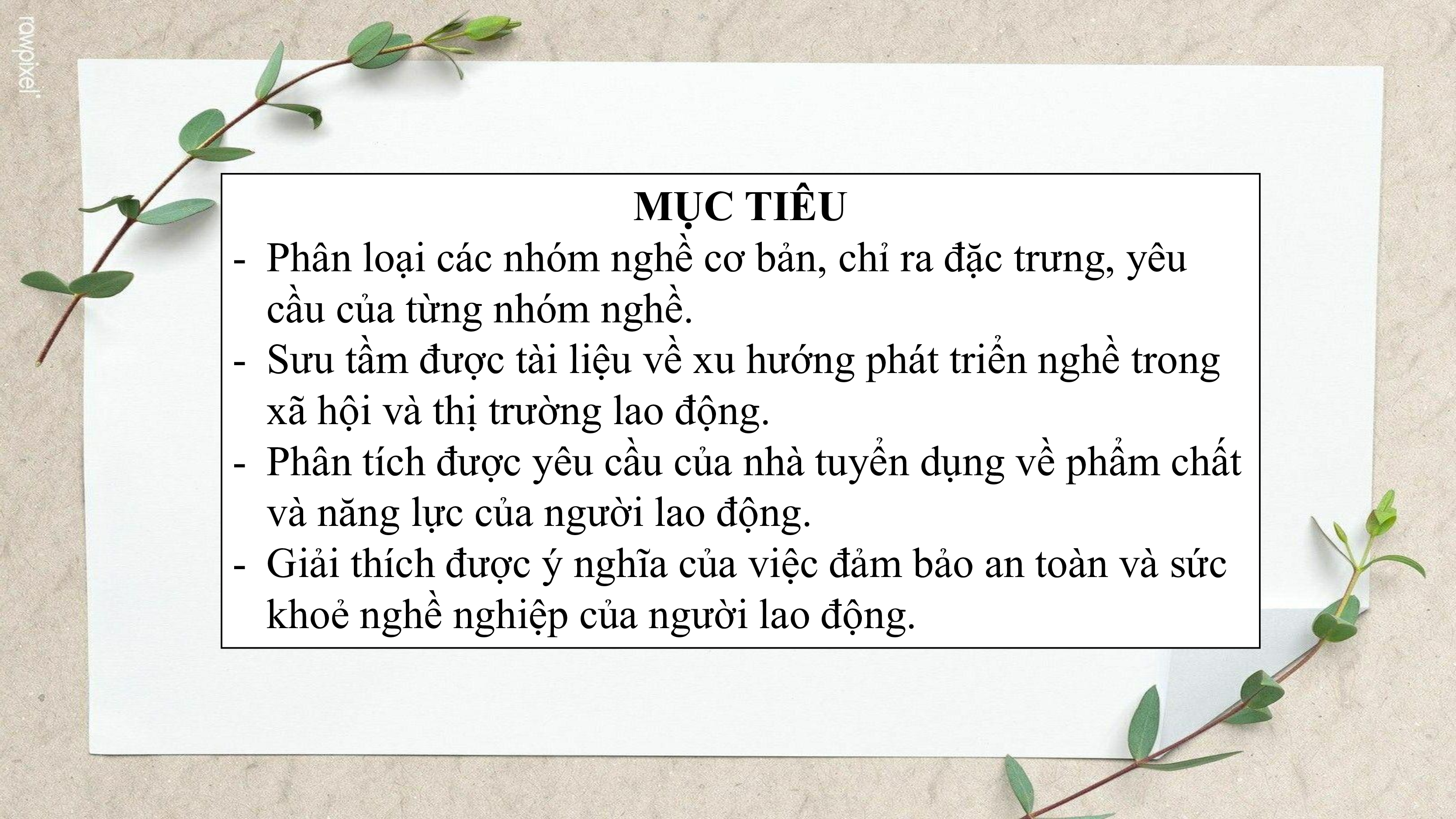 - Phân loại các nhóm nghề cơ bản, chỉ ra đặc trưng, yêu