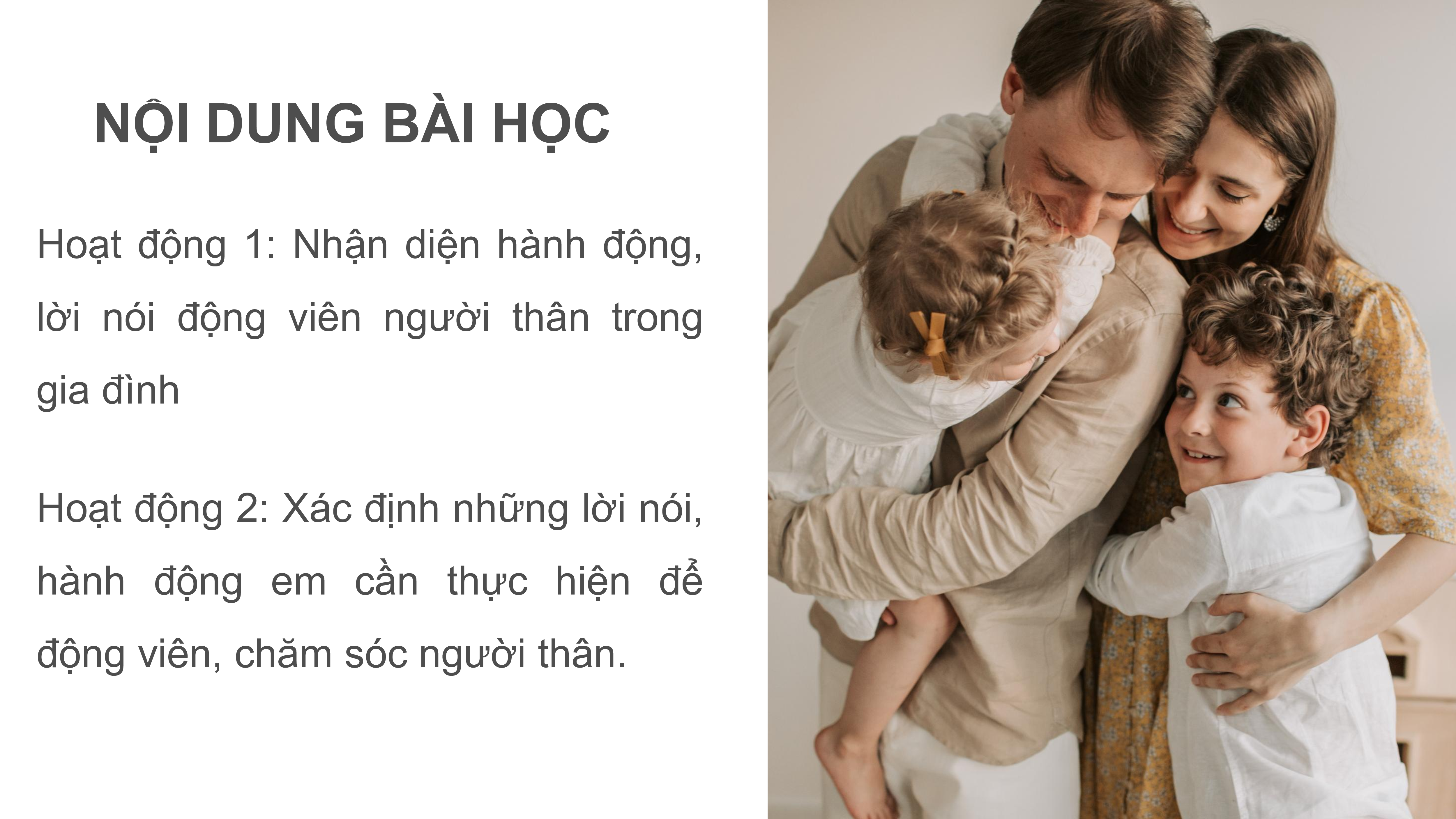 ĐỘNG VIÊN, CHĂM SÓC NGƯỜI THÂN TRONG GIA ĐÌNH NỘI DUNG BÀI HỌC