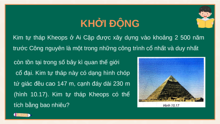 (hình 10.17). Kim tự tháp Kheops có thể tích bằng bao nhiêu?