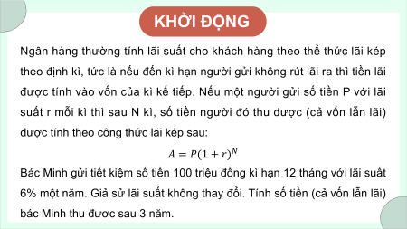 suất r mỗi kì thì sau N kì, số tiền người đó thu dược (cả vốn lẫn lãi)