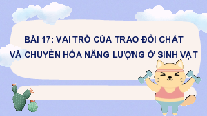 BÀI 17: VAI TRÒ CỦA TRAO ĐỔI CHẤT