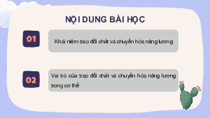 VÀ CHUYỂN HÓA NĂNG LƯỢNG Ở SINH VẬT NỘI DUNG BÀI HỌC 01