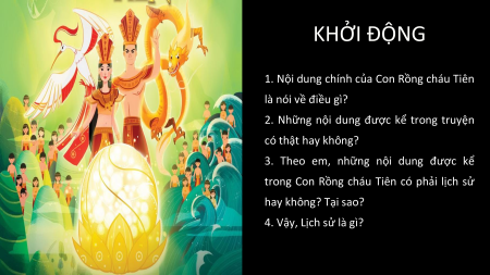 trong Con Rồng cháu Tiên có phải lịch sử hay không? Tại sao? 4. Vậy, Lịch sử là gì? KHỞI ĐỘNG