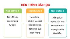 TIẾN TRÌNH BÀI HỌC Tiền đề của Mục tiêu, Kết quả, ý cách mạng nhiệm vụ, giai nghĩa của một tư sản cấp lãnh đạo, số cuộc cách động lực của mạng tư sản cách mạng tiêu biểu. KHỞI ĐỘNG KHỞI ĐỘNG Theo dõi đoạn video sau đây và trả lời câu hỏi: (1) Đoạn video này