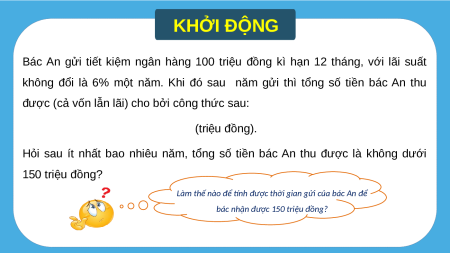 Hỏi sau ít nhất bao nhiêu năm, tổng số tiền bác An thu được là không dưới 150 triệu đồng?
