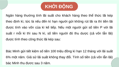 suất r mỗi kì thì sau N kì, số tiền người đó thu dược (cả vốn lẫn lãi)