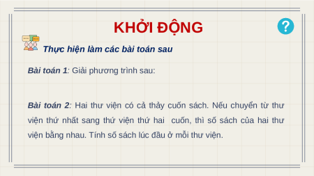 Bài toán 2: Hai thư viện có cả thảy cuốn sách. Nếu chuyển từ thư