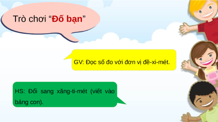 HS: Đổi sang xăng-ti-mét (viết vào bảng con). MI-LI-MÉT (2 Tiết)
