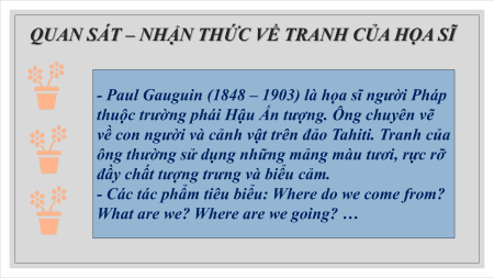 - Bộ bài giảng powerpoint Mĩ thuật 8 Chân trời sáng tạo bao gồm đầy đủ các bài giảng trong cả năm. Bộ bài giảng được thiết kế theo phong cách hiện đại, đẹp mắt, trình bày chi tiết cho từng phần học và bám sát chương trình Sách giáo khoa Mĩ thuật 8 Chân trời sáng tạo.