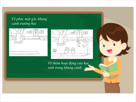 Các bước vẽ tranh quang cảnh một góc của trường học.