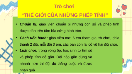 • Chuẩn bị: giáo viên chuẩn bị những con số và phép tính