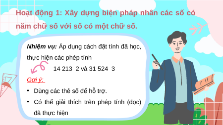 Nhiệm vụ: Áp dụng cách đặt tính đã học, thực hiện các phép tính 14 213 2 và 31 524 3 Gợi ý: