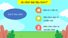 NHIỆT LIỆT CHÀO MỪNG CÁC EM ĐẾN VỚI TIẾT HỌC Ai nhớ bài lâu hơn? Đếm từ 1 đến 10 Gọi 3 học sinh Đếm theo chục từ 10 đến 100 Đếm theo trăm từ 100 đến 1000
