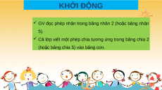 GV đọc phép nhân trong bảng nhân 2 (hoặc bảng nhân 5).